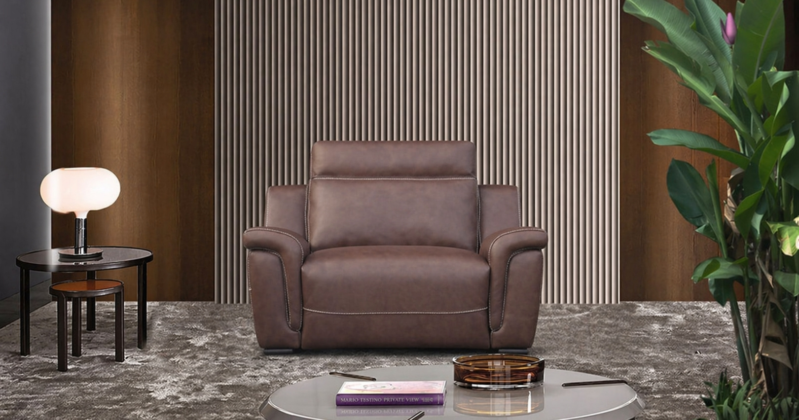 En photo le salon ABRAM est habillé de Cuir Vachette Premium coloris Chocolat nature piqures contrastées (gros fils).