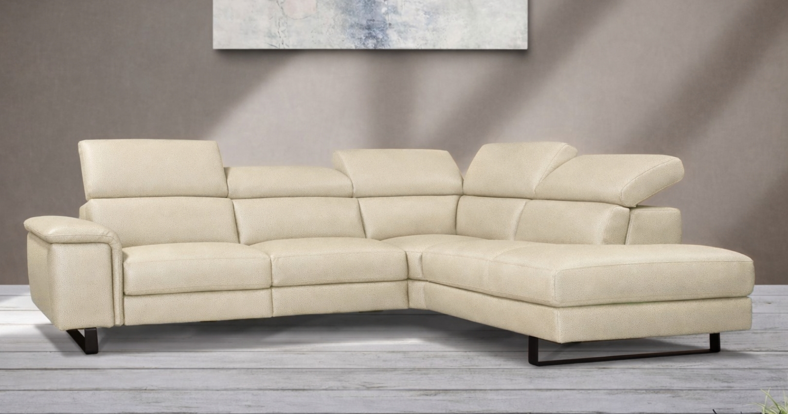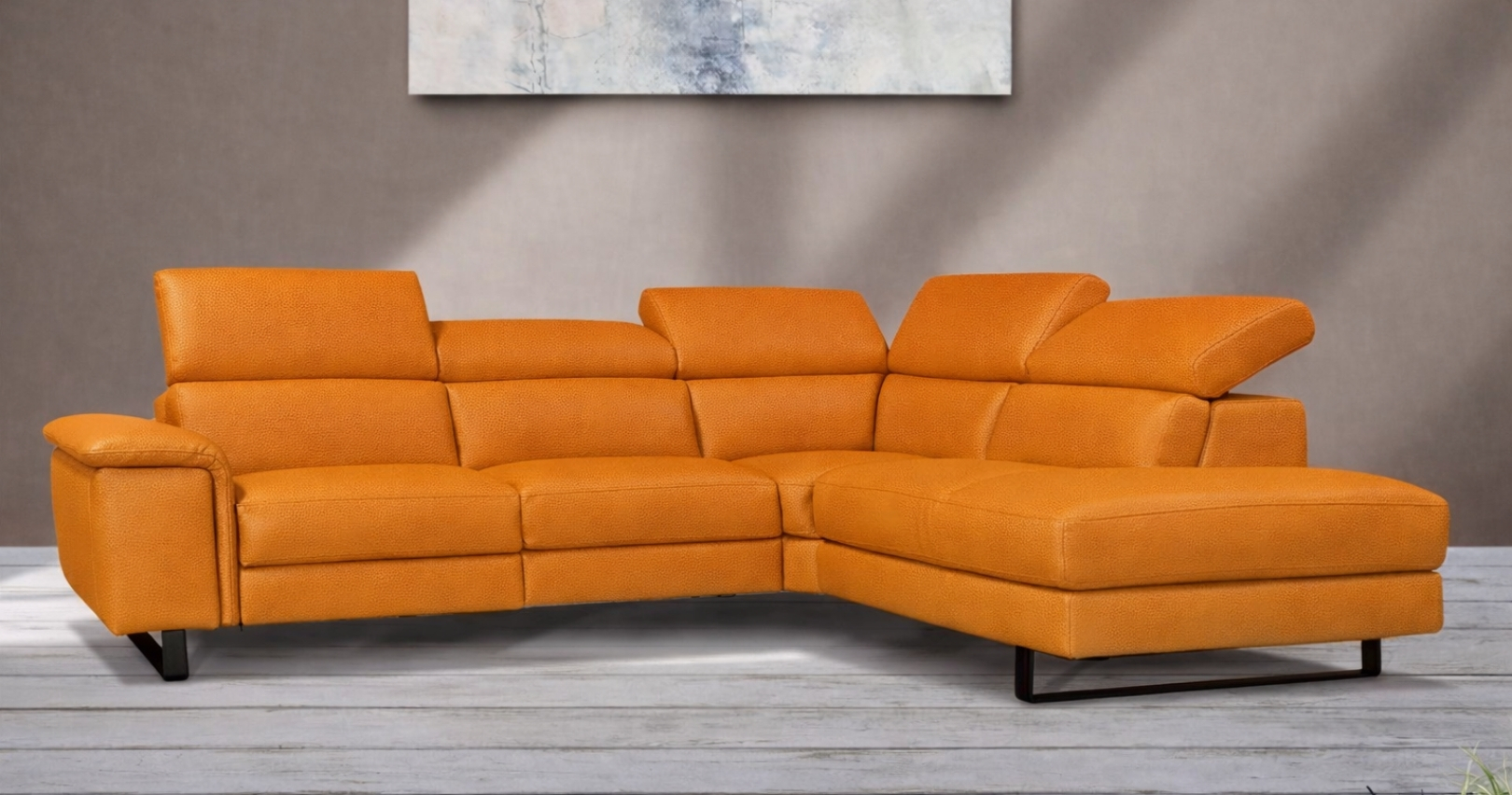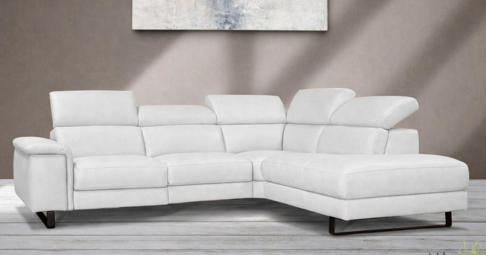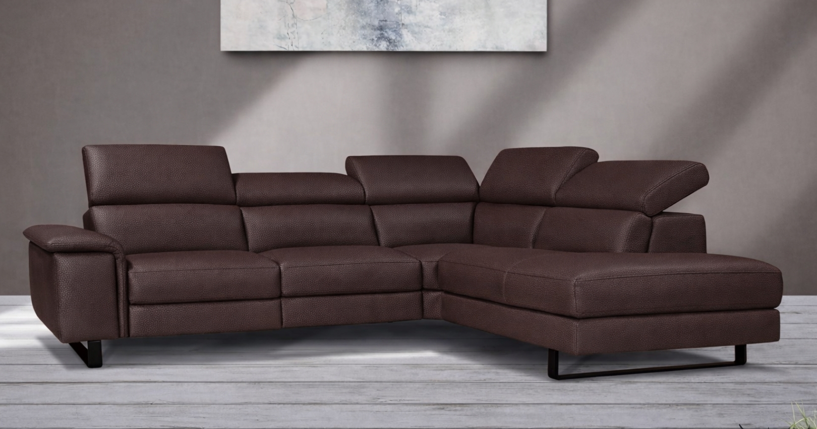 BRAGA est un canapé d'angle contemporain, avec relaxation électrique (en option) ou fixe. Épuré et élégant grâce à sa base surélevée, il est également doté d'un grand confort d'assise. Ses têtières relevables et réglables permettent un bon maintien de la nuque et de la tête. Entièrement habillé de Cuir Vachette Premium épaisseur 1.6 à 1.8 mm ou cuir Vachette Excelluim 2.0 à 2.2mm, il est aussi très simple d'utilisation grâce à ses deux boutons de commandes.