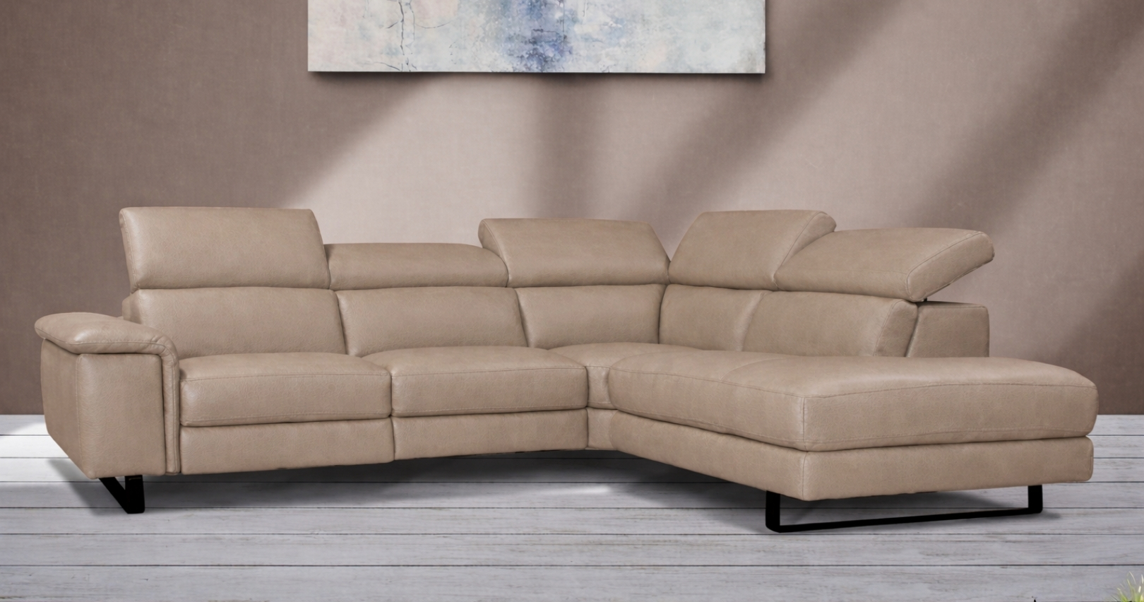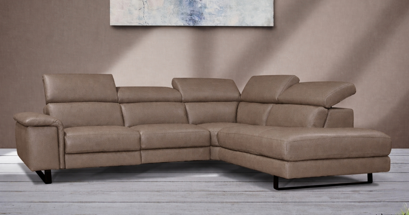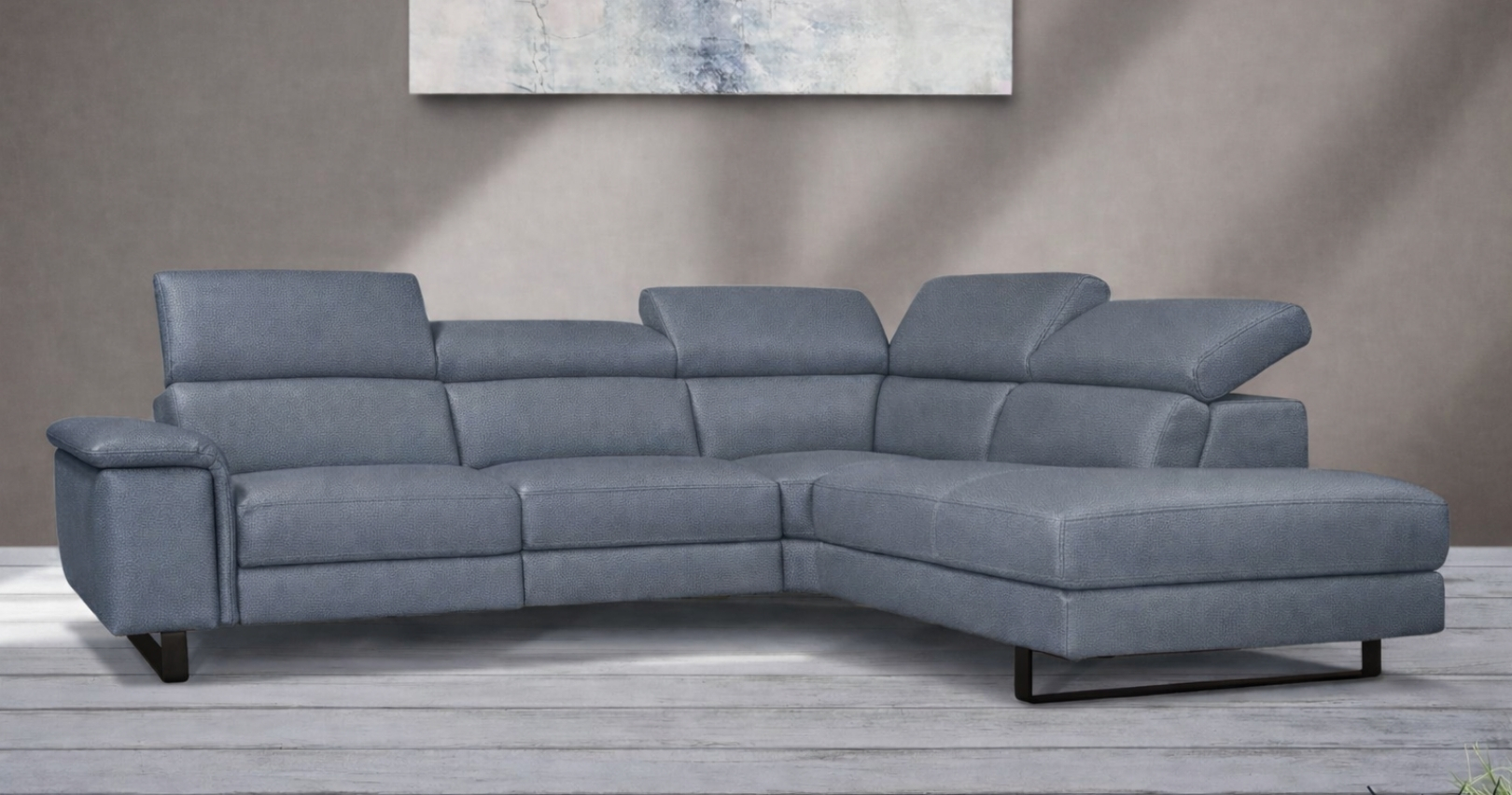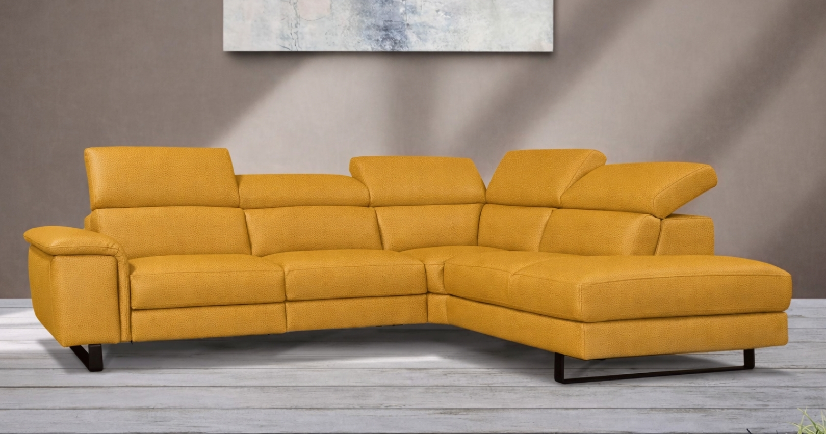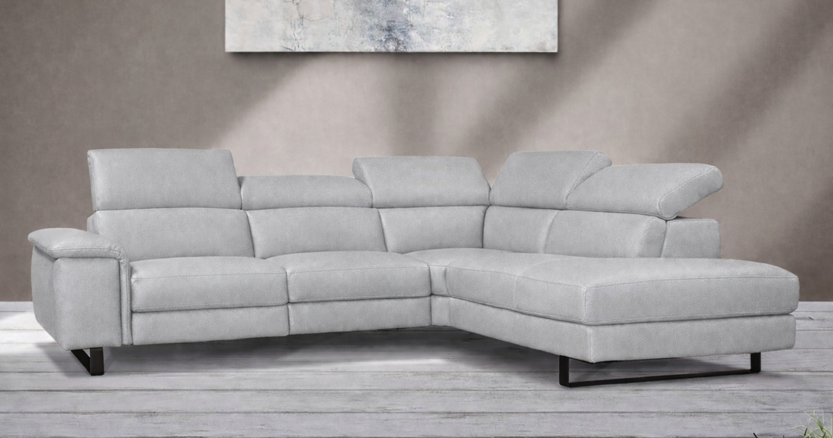 BRAGA est un canapé d'angle contemporain, avec relaxation électrique (en option) ou fixe. Épuré et élégant grâce à sa base surélevée, il est également doté d'un grand confort d'assise. Ses têtières relevables et réglables permettent un bon maintien de la nuque et de la tête. Entièrement habillé de Cuir Vachette Premium épaisseur 1.6 à 1.8 mm ou cuir Vachette Excelluim 2.0 à 2.2mm, il est aussi très simple d'utilisation grâce à ses deux boutons de commandes.