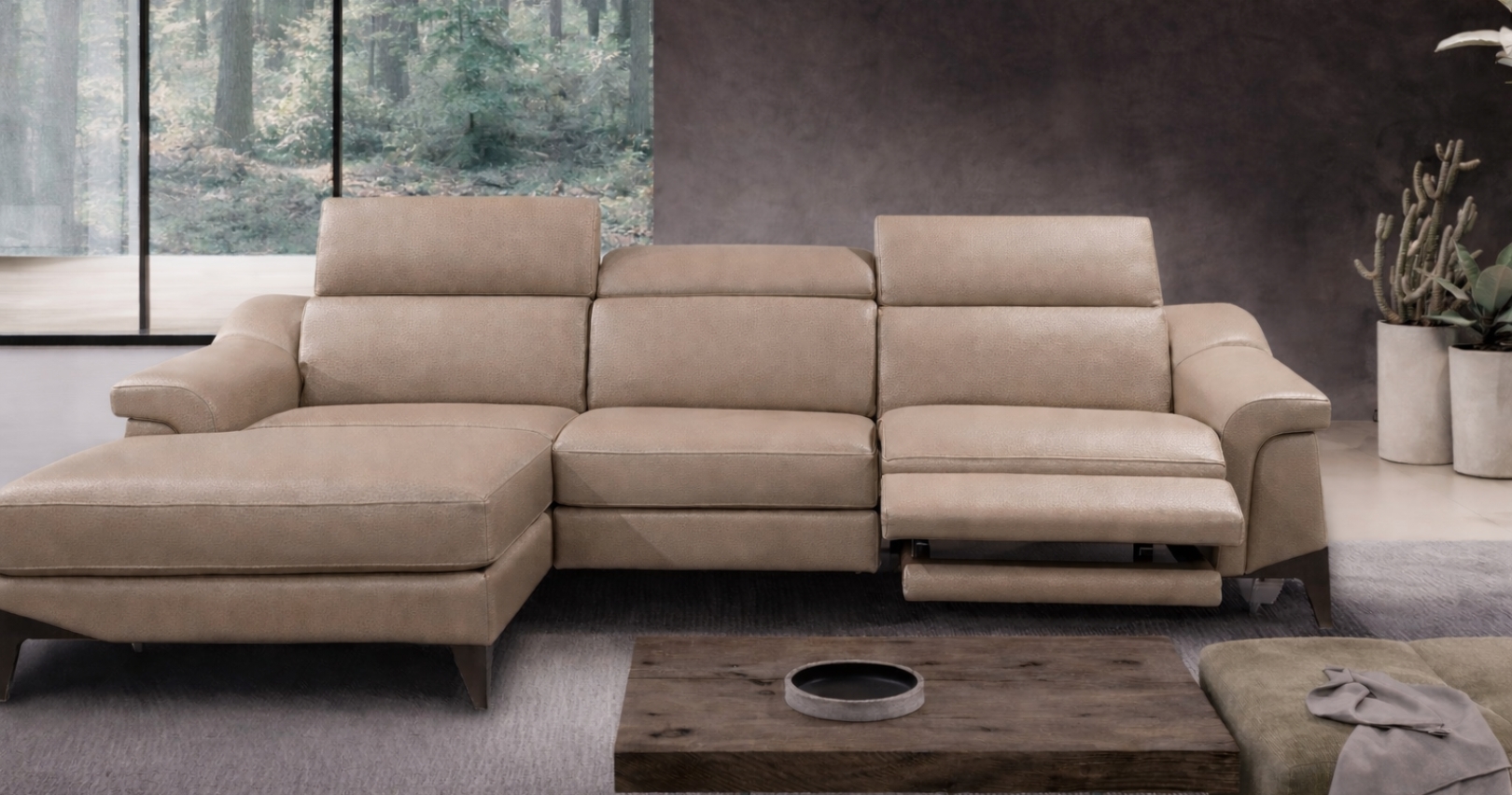 COUNTRY angle méridienne, c'est l'élégance contemporaine au service du confort. Avec ses lignes épurées et sa silhouette surélevée, le canapé d'angle CONTRY s'impose par son design moderne et raffiné. Disponible en version fixe ou avec relaxation électrique (en option), il offre un confort optimal grâce à son assise généreuse et ses têtières relevables et ajustables manuellement, idéales pour un excellent soutien de la tête et de la nuque. Possibilité de têtière(s) électrique (en option choix à l'étape 4) uniquement avec l'option relaxation élecrique. Entièrement revêtu de cuir Vachette Premium ou de cuir Vachette Excellium, COUNTRY allie noblesse des matériaux et facilité d'utilisation, avec un système de commande intuitif à deux boutons.