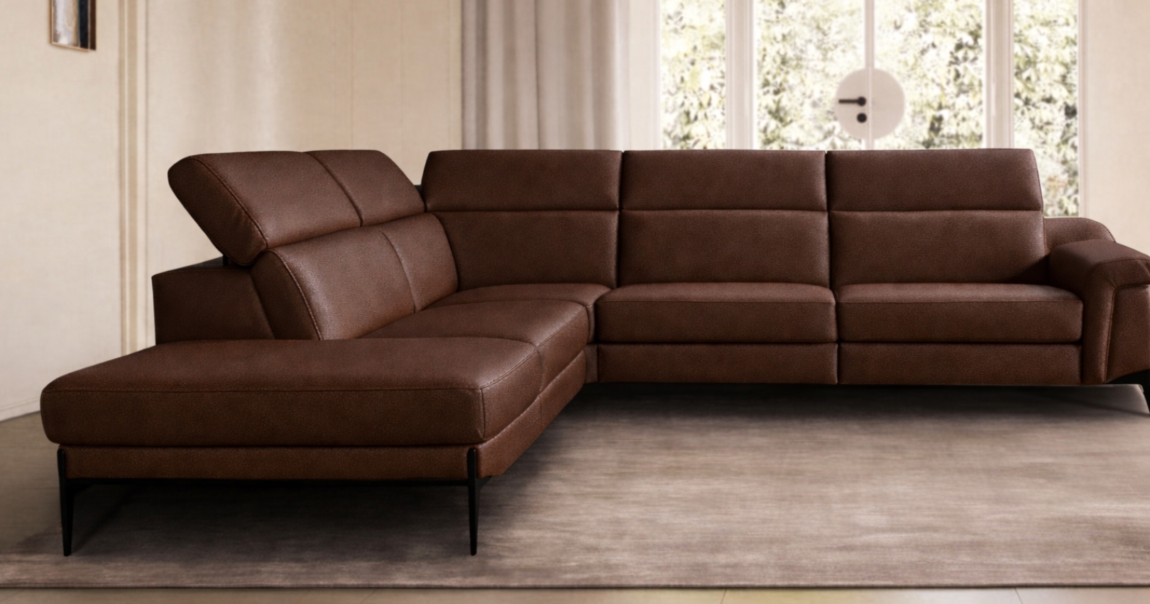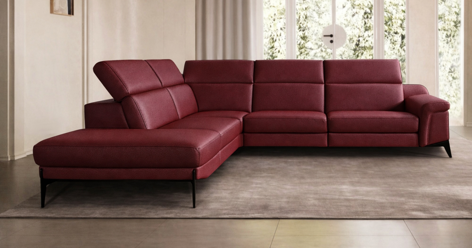 COUNTRY c'est l'élégance contemporaine au service du confort. Avec ses lignes épurées et sa silhouette surélevée, le canapé d'angle CONTRY s'impose par son design moderne et raffiné. Disponible en version fixe ou avec relaxation électrique (en option), il offre un confort optimal grâce à son assise généreuse et ses têtières relevables et ajustables manuellement, idéales pour un excellent soutien de la tête et de la nuque. Possibilité de têtière(s) électrique (en option choix à l'étape 4), uniquement avec l'option relaxation électrique. Entièrement revêtu de cuir Vachette Premium ou de cuir Vachette Excellium, COUNTRY allie noblesse des matériaux et facilité d'utilisation, avec un système de commande intuitif à deux boutons.