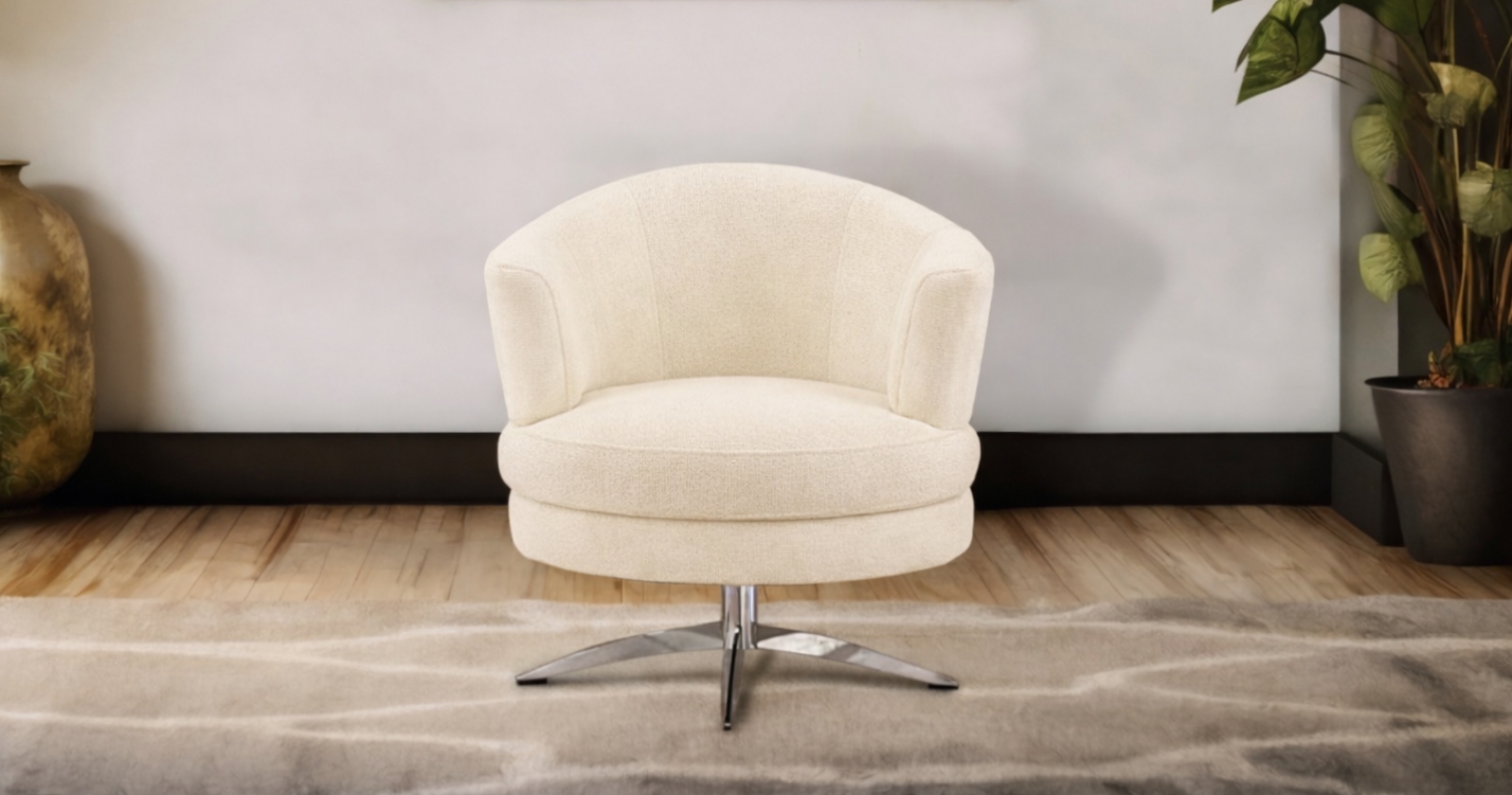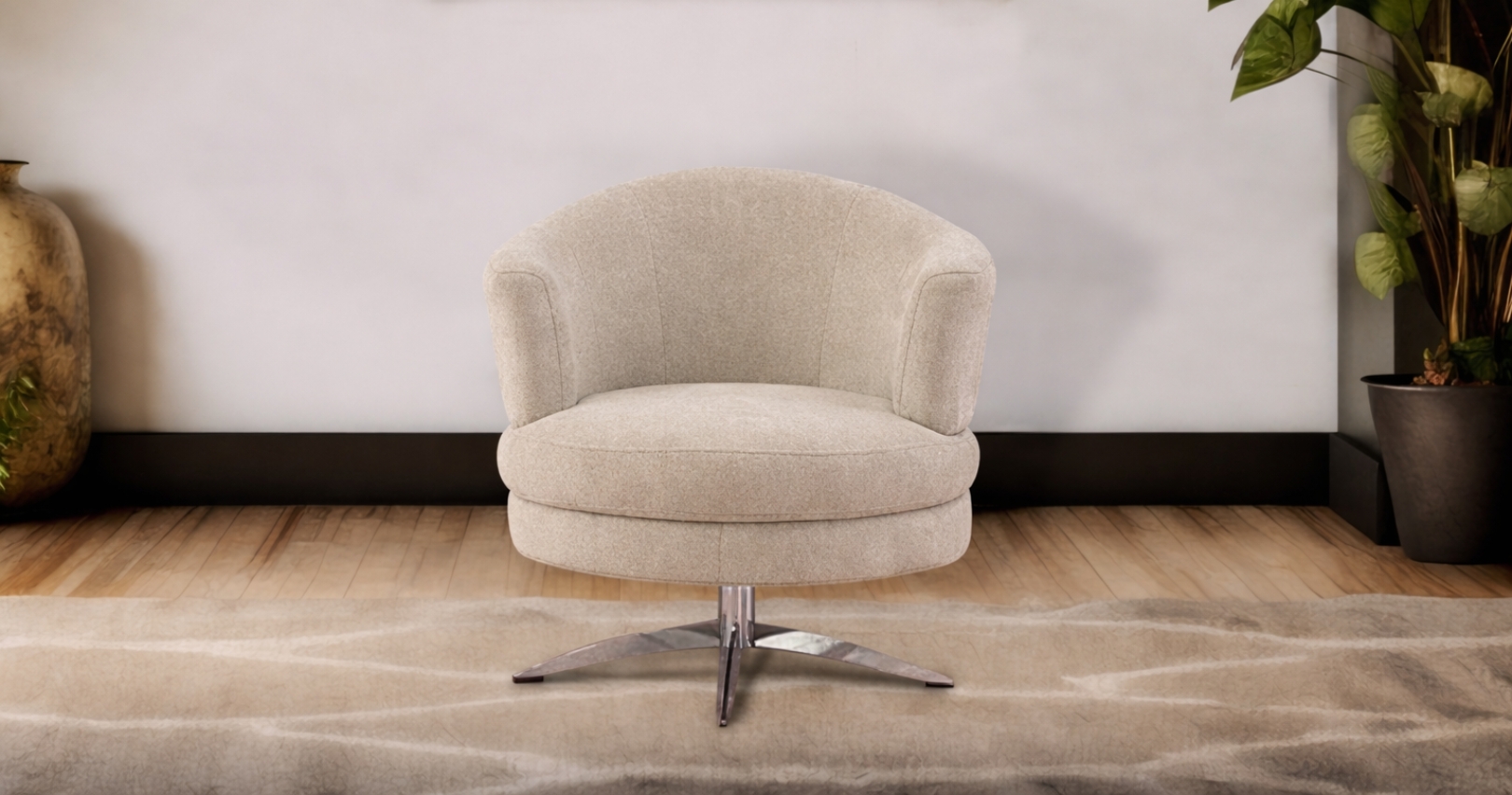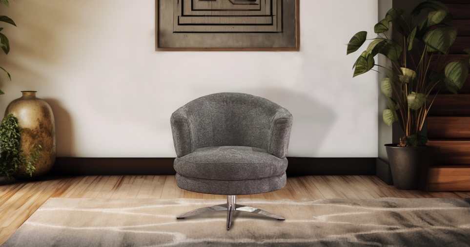 EMY est un fauteuil pivotant design et élégant. Confortable et peu encombrant, il s'intégrera parfaitement à chaque ambiance : maison, salon, hall, salle d'attente, chambre... Sa base pivotante en acier vient parfaire ce modèle et lui donne un côté unique.
