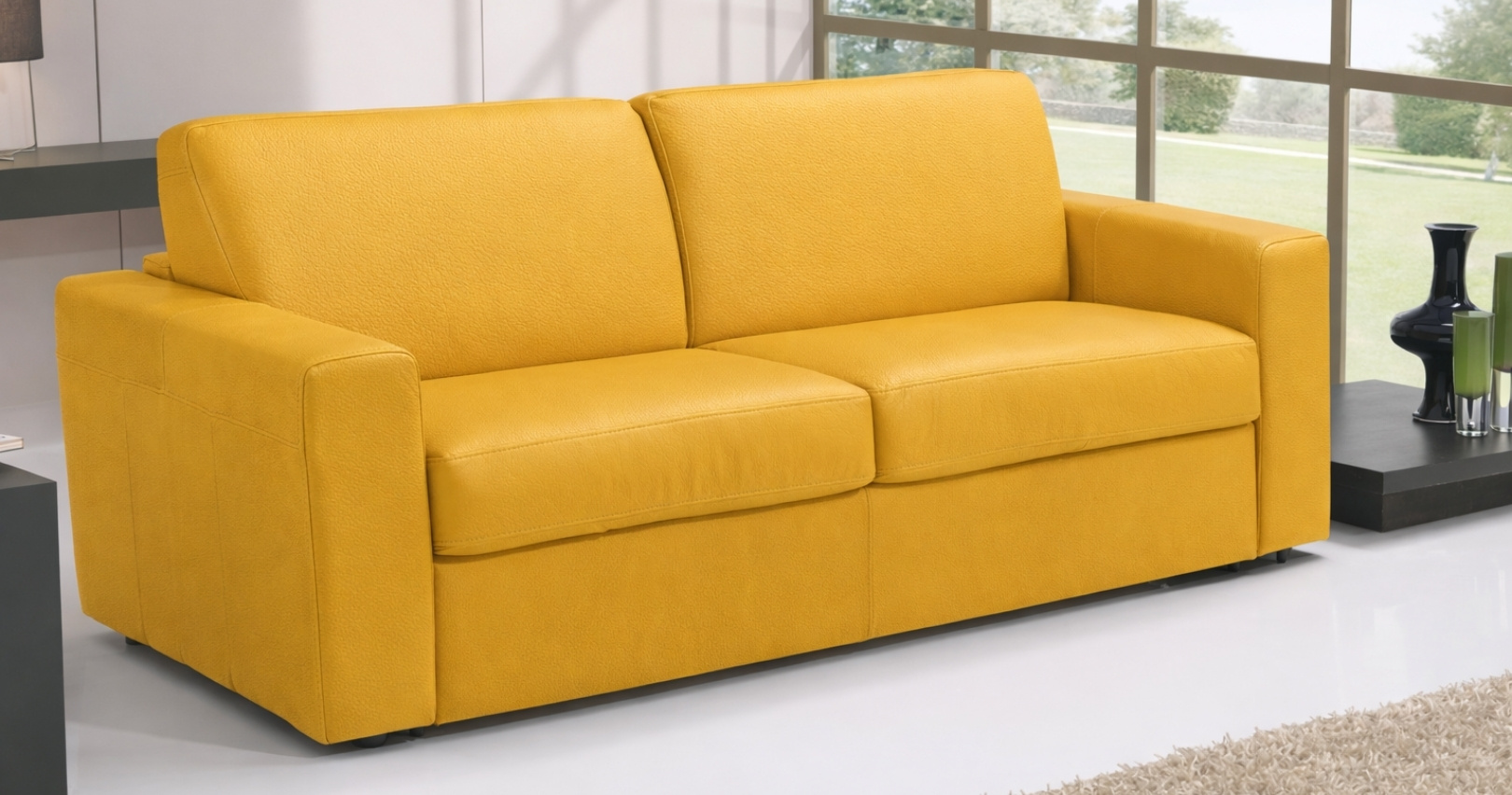 MANGALORE : Canapé convertible système Fast'bed® ouverture très facile, ne demandant pas d'effort important. Son couchage est un vrai lit particulièrement confortable grâce au matelas de 13cm d'épaisseur. Fabrication Italienne.