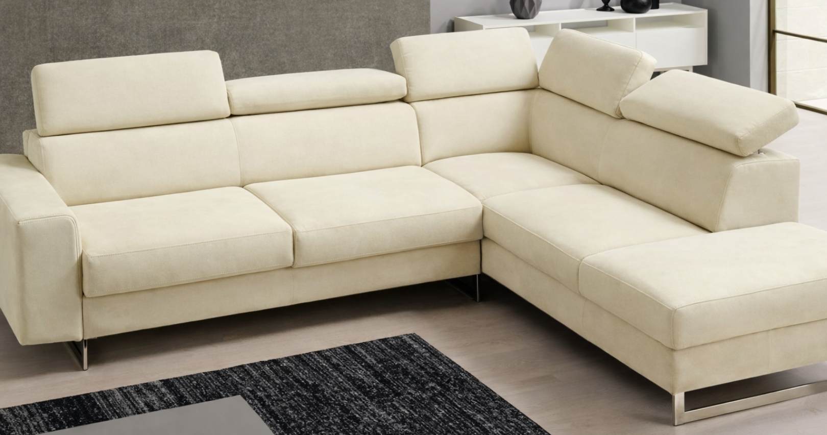 NATACHA - Magnifique, c'est le terme le mieux approprié pour qualifier ce panoramique d'angle avec convertible. Habillage Micronabuck. Ce canapé design Italien, offre une qualité supérieure. Convertible Rapido, système