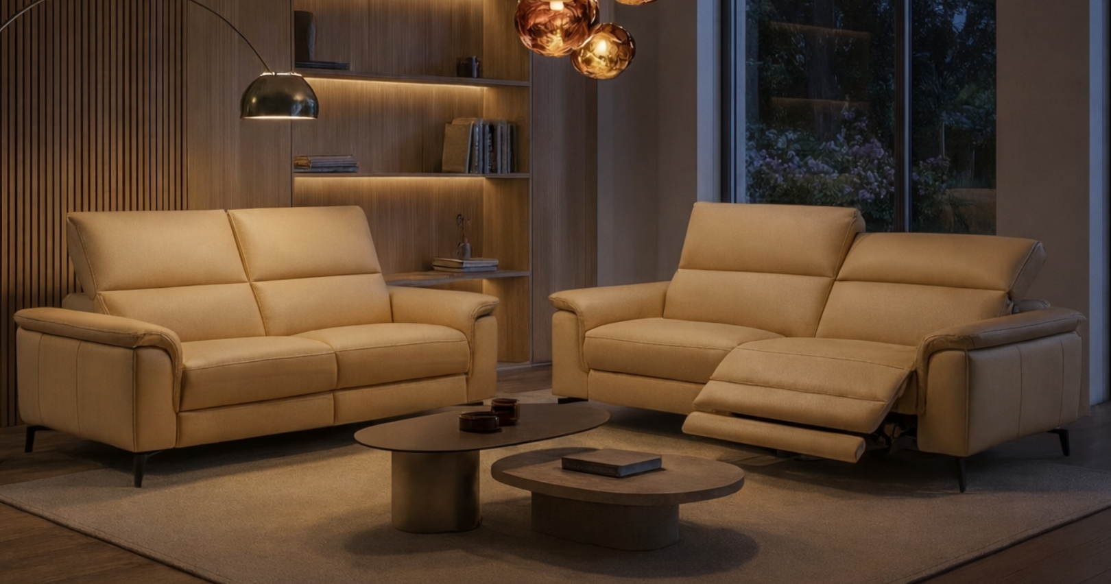- Possibilité de têtière(s) électriques (en option, choix à l'étape 4) uniquement pour les canapés/fauteuils relaxation