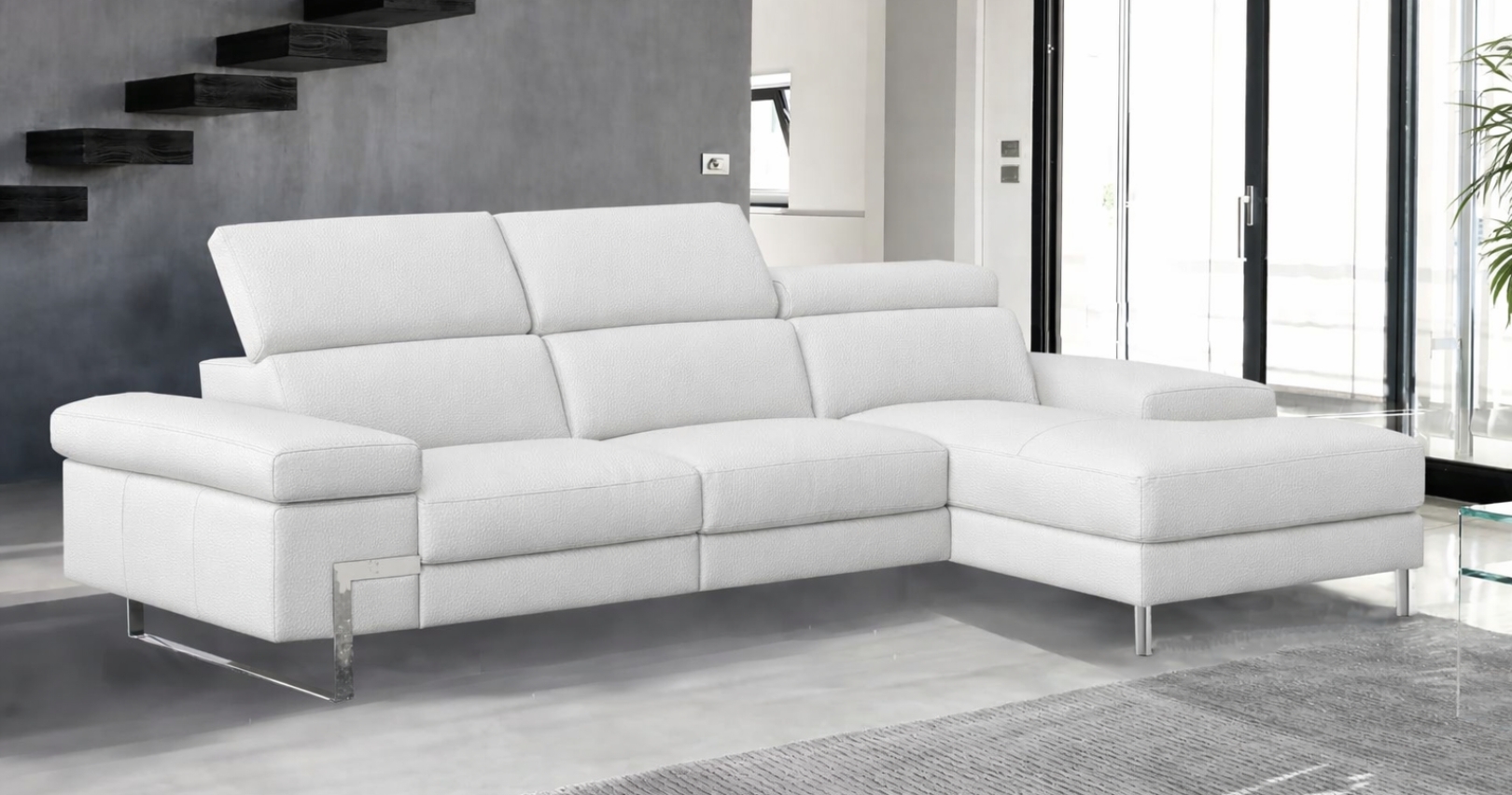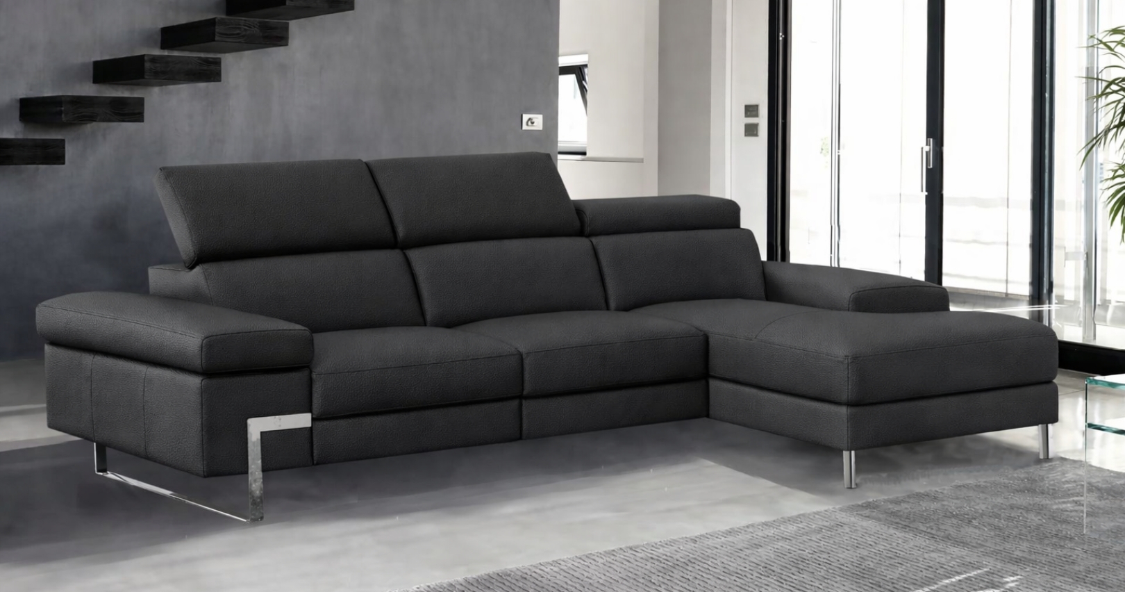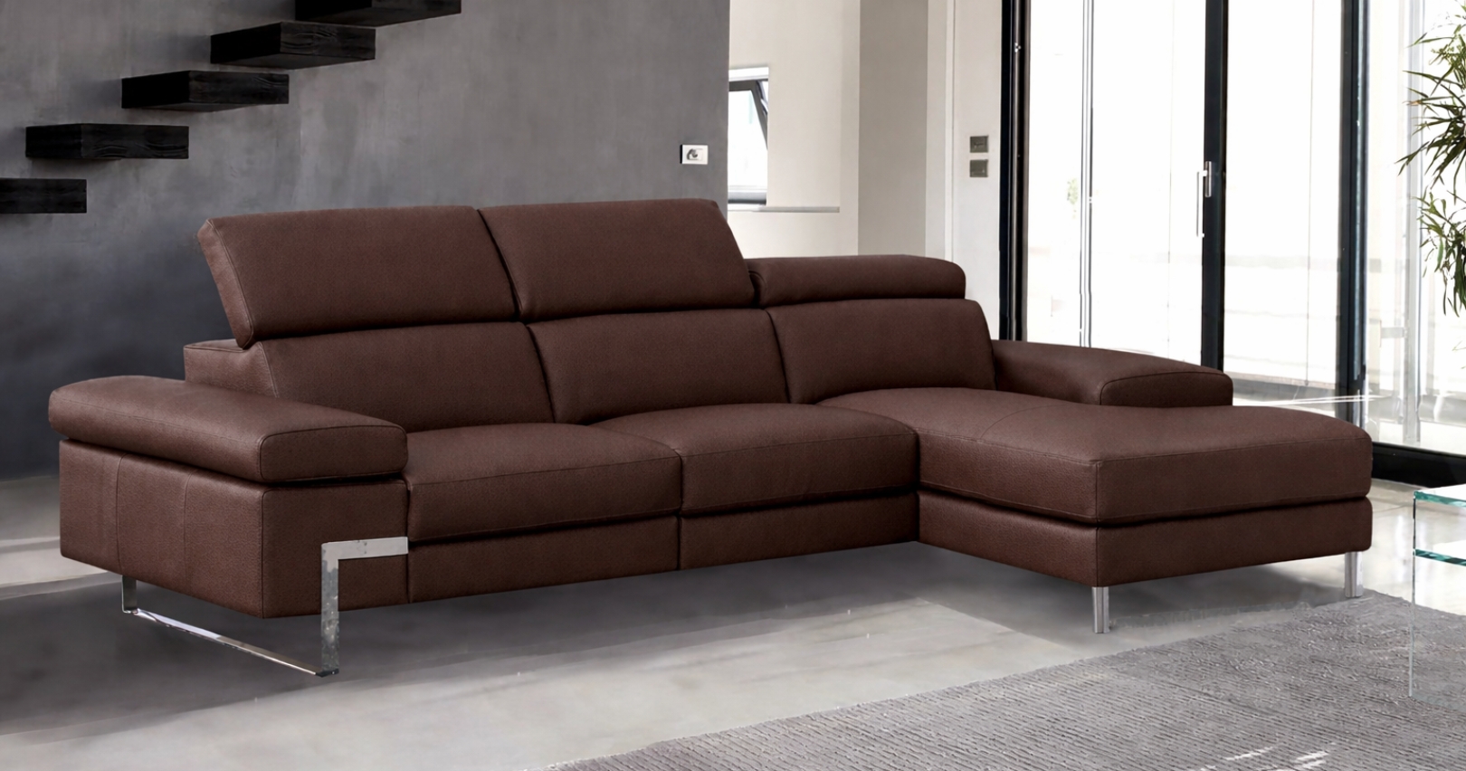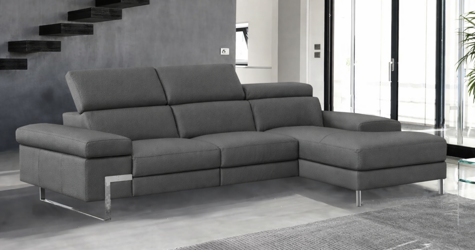 URANUS, angle Méridienne contemporain, avec relaxation électrique (en option) ou fixe. Les têtières et l'accoudoir sont relevables et réglables manuellement. Possibilité de têtière(s) électrique (en option, choix à l'étape 4), uniquement avec l'option relaxation. Base surélevée sur pieds acier chromé, revêtement Cuir Vachette Premium épaisseur 1.6 à 1.8 mm ou cuir Vachette Excellium 2 à 2.2mm.